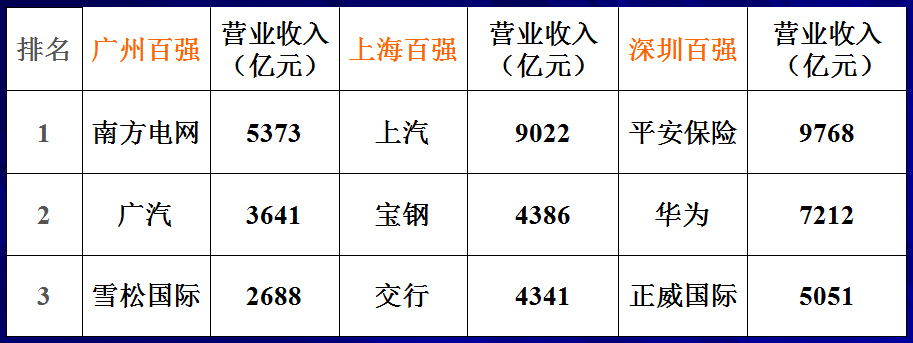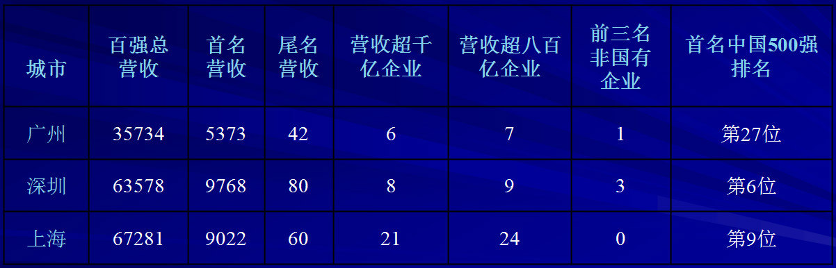 從營收數據來看,對比上海、深圳,廣州100強企業在營收總規模上還存在一定的差距。